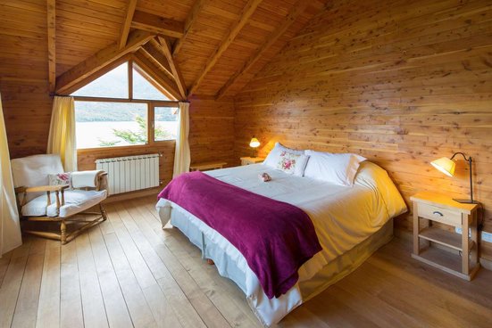 Infrastruktur6 rustikale Gästezimmer in 2 Kategorien mit traumhaftem Blick auf den See, den berühmten Berg Fitz Roy sowie den Vespignani-Gletscher. Gemütlicher Aufenthaltsraum mit hoher Decke und Kaminfeuer, Bibliothek mit interessanten Büchern der Gegend und Speiseraum mit grossen Panoramafenstern.
