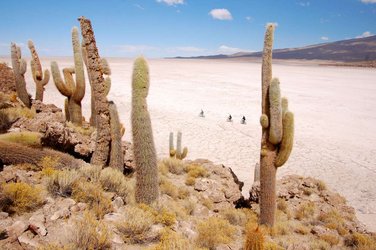 Ankunft in Uyuni. Eine unwirkliche Landschaft erwartet Sie hier: das grenzenlose Weiss des Salar de Uyuni auf 3650 m. Mit dem Geländewagen fahren Sie über die grösste «Salzpfanne der Welt» zu Ihrer einzigartigen Unterkunft, einem komfortablen Airstream Camper, welcher direkt auf dem Salzsee stationiert ist. Nach dem Mittagessen stehen verschieden Aktivitäten zur Auswahl. Fahren Sie beispielsweise zur Insel Incahuasi (Haus der Inkas) mit ihren bis zu 6 m hohen Kakteen. Ein Wanderweg führt Sie zum höchsten Punkt der Insel, wo sich Ihnen eine wunderschöne Aussicht bietet. Anschliessend Rückfahrt zum Camper und Abendessen. Packen Sie sich dann warm ein, setzen Sie sich in den bequemen Sessel vor dem Camper und geniessen Sie den Blick in den überwältigenden Sternenhimmel.